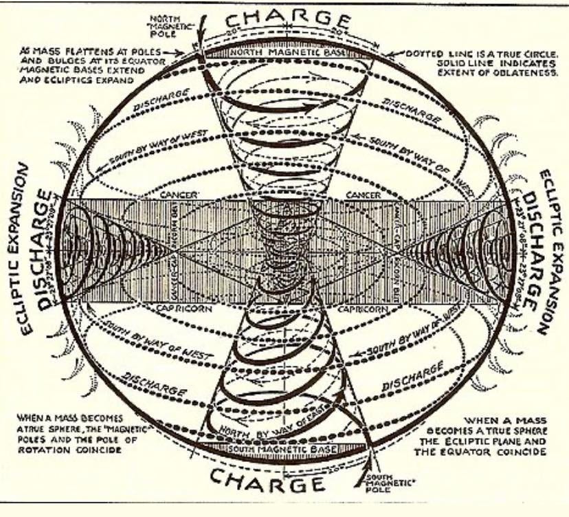 Walter Russell, “Electric Wave of Creation / Charge–Discharge in the Universal One”, The Universal One, 1926.